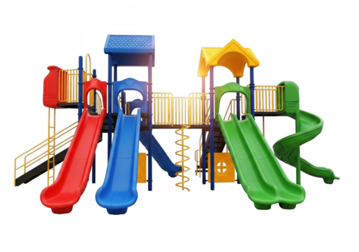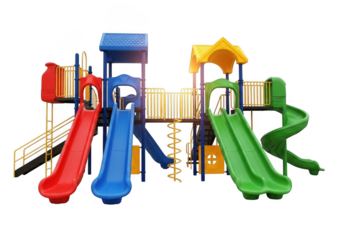 Wooden climbing play structure for kids in a park, isolated on transparent background