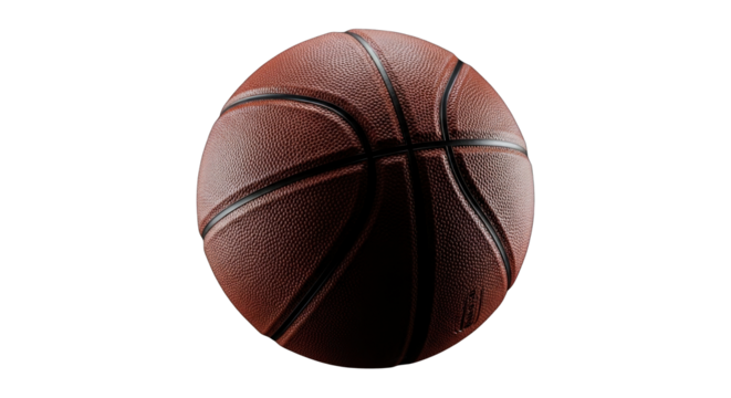 Basketball presentation emphasizing detail and texture on a stark black backdrop