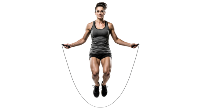 Determined woman pulling rope in intense effort, isolated of transparent
