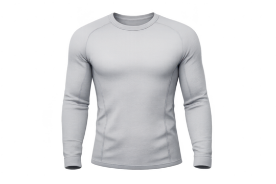 Gray long-sleeve shirt on transparent background, activewear concept