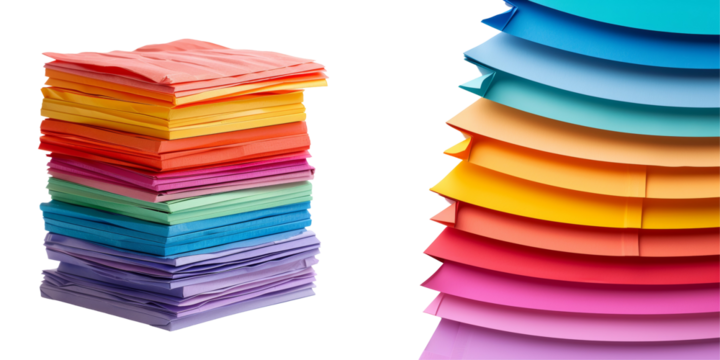 Colorful Construction Paper Stack Set Isolated on Transparent or White Background, PNG