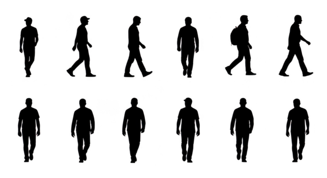 Silhouettes of people walking isolated on transparent background