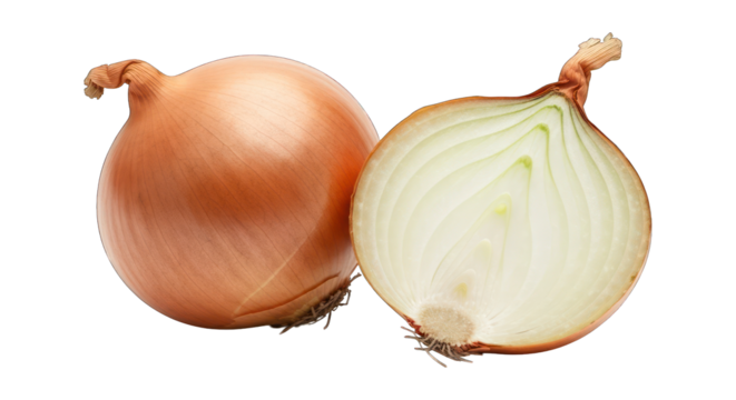 Golden onions and vibrant green parsley arranged elegantly on transparent background
