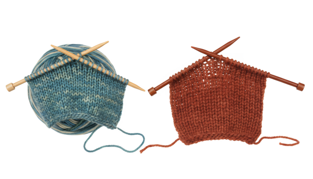 編み物用毛糸と棒針(背景透過)
