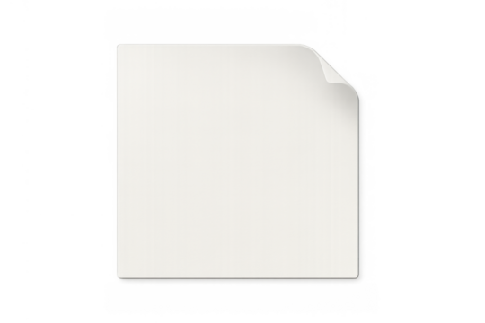 White paper sheet with curled corner, blank page mockup for text, message, or ad, transparent background