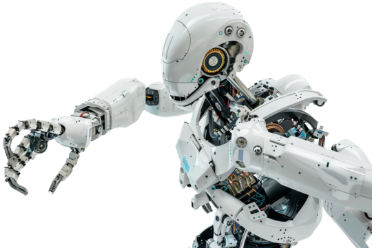 Determined businessman displaying professional strength on transparent background