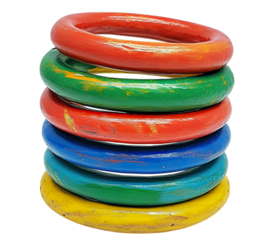 A stack of colorful wooden rings