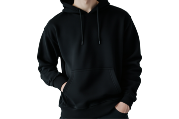 Black Hoodie Mockup with Front Pocket on Transparent Background
