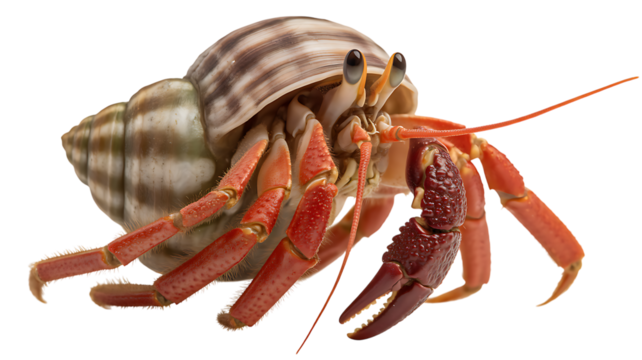 A close up view of a vibrant hermit crab emerging from its adopted shell