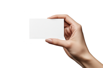 Hand holding an empty card against a transparent background for creative design possibilities and versatile applications