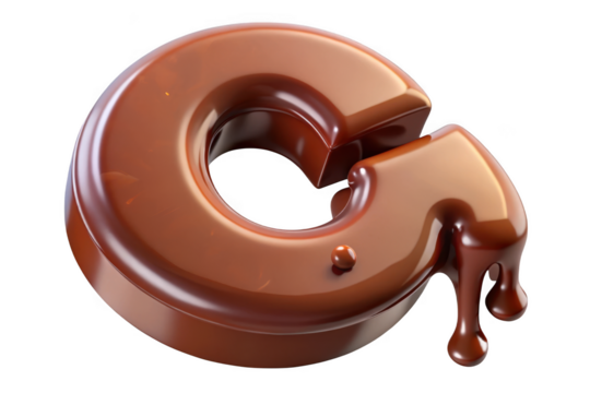 Letter g made of chocolate isolated on transparent background for confectionery, dessert, and sweet-themed designs.
