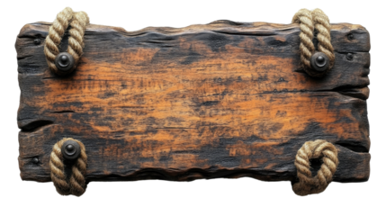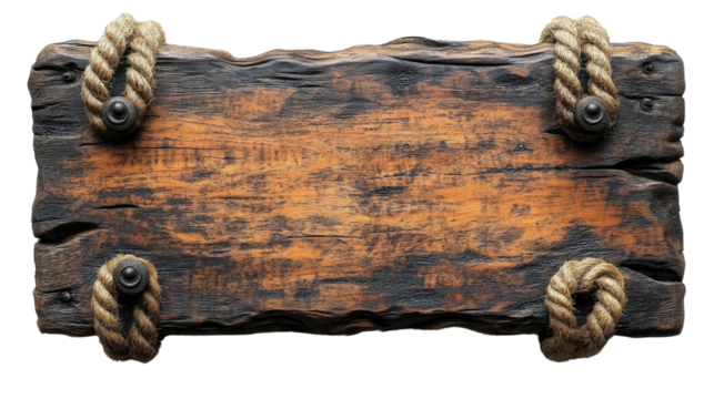 Rustic Signboard with Ropes: A weathered, wooden signboard with rope detailing, perfect for adding a touch of vintage charm to your message or design.