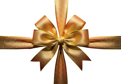 Luxurious golden ribbon bow for sophisticated gift wrapping and festive celebrations, adding a touch of elegance to your holiday designs and marketing campaigns with this stunning detail