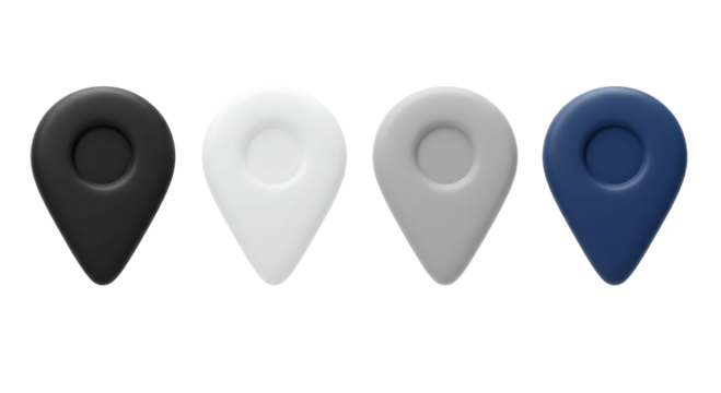 3D Location Pin Icons Set - Black, White, Grey, Blue