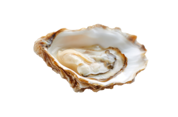 Pearl in open oyster shell with lustrous surface, natural nacre interior, isolated on a transparent background