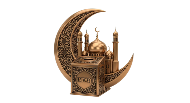 Islamic infaq donation box with crescent moon and mosque for ramadan and eid al adha celebration