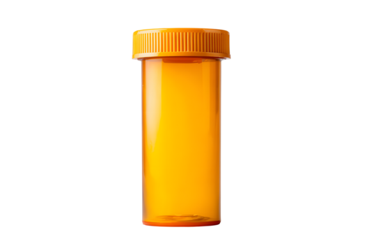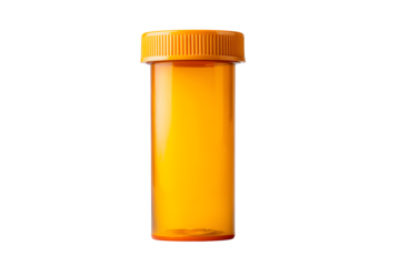 Clear orange prescription bottle sits on a plain background for use in medication storage and organization