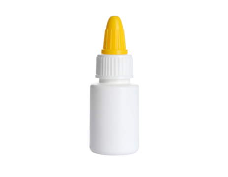 A small white plastic bottle with a pointed nozzle and screw cap, typically used for dispensing glue or adhesive in precise amounts.