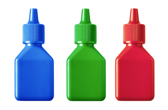 Small white bottle with red applicator tip isolated on transparent background. Glue bottle isolated on white background.