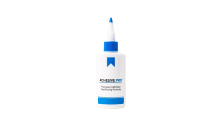 White bottle pouring out a stream of liquid adhesive, symbolizing crafting, diy projects, and creative activities