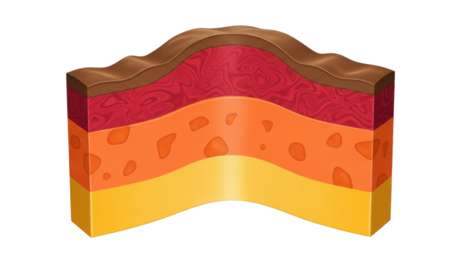 3D rendering of skin cross-section depicting a hair follicle, sebaceous gland, arrector pili muscle, adipose tissue, and blood vessel. background removed
