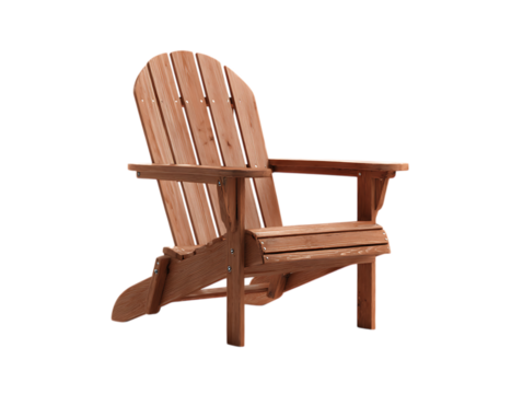 Wooden Adirondack chair PNG isolated on transparent background, outdoor furniture for patio and garden design projects