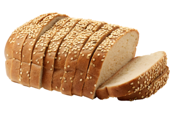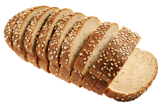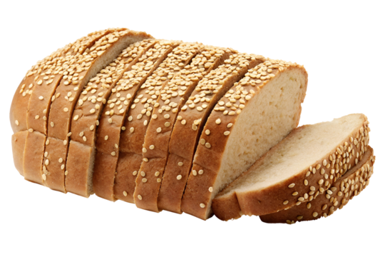 Sliced bread topped with sesame seeds, isolated on transparent background