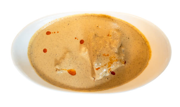 Satsivi chicken in walnut sauce cutout on white