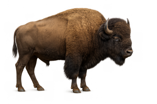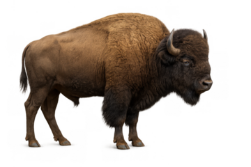 American bison standing, symbol of resilience and strength, shaggy brown coat and powerful build, transparent background