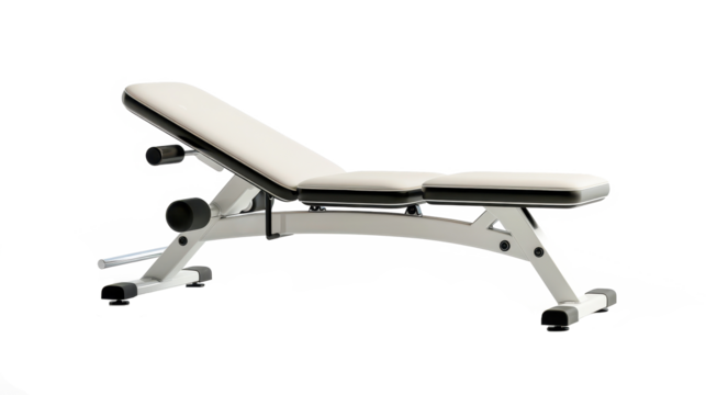 Adjustable weight bench on a white background, designed for versatile workouts and home gym setups, perfect for strength training