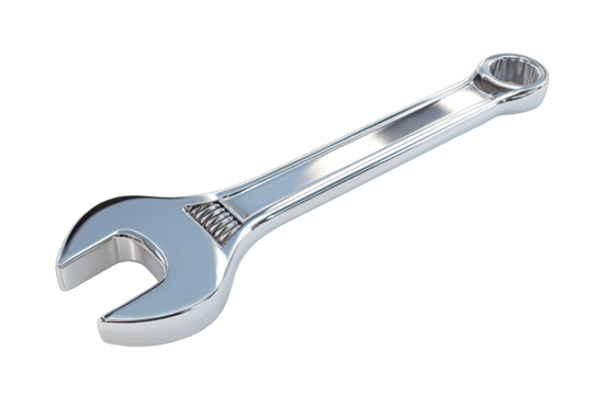 Flat adjustable wrench with serrated adjuster transparent background