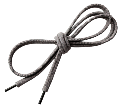 Funny concept of shoelaces tied together on jeans outfit