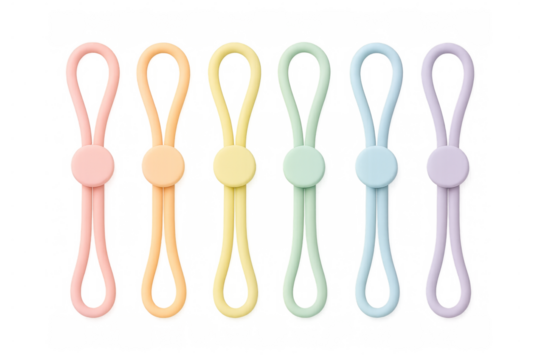 Pastel colored elastic fasteners isolated on transparent background