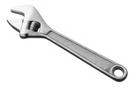 A shiny adjustable wrench is isolated on transparent background, ready for repairs
