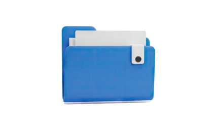 Blue folder icon with white papers and clip on transparent background