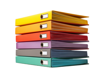 Colorful office ring binders arranged neatly for organizing documents in a modern workspace setting
