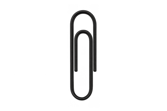 Black paper clip providing organization and fastening for office documents and stationery, flat vector illustration on transparent background