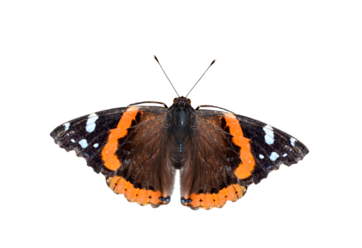 Isolated Red Admiral butterfly with open wings, beautiful insect and nature concept