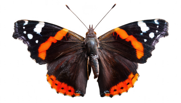 Isolated red admiral butterfly with open wings