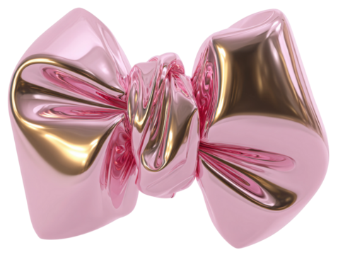 Shiny pink bow decoration studio setting product photography close-up. Isolated on transparent background, png.