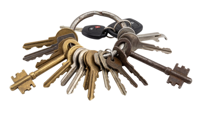 Ornate antique key PNG isolated on transparent background, vintage golden skeleton key for design elements and security concepts