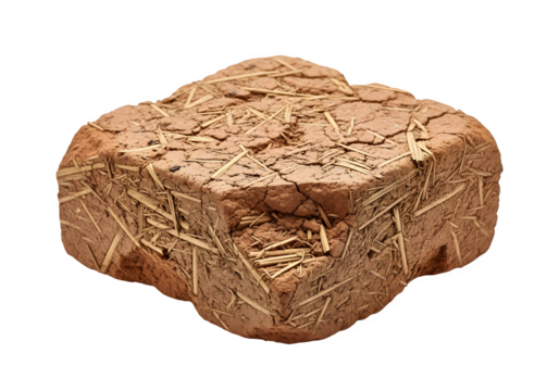 A mud brick with straw isolated on transparent background, showcasing its rustic texture and earthy tones, ideal for sustainable building or natural material concepts