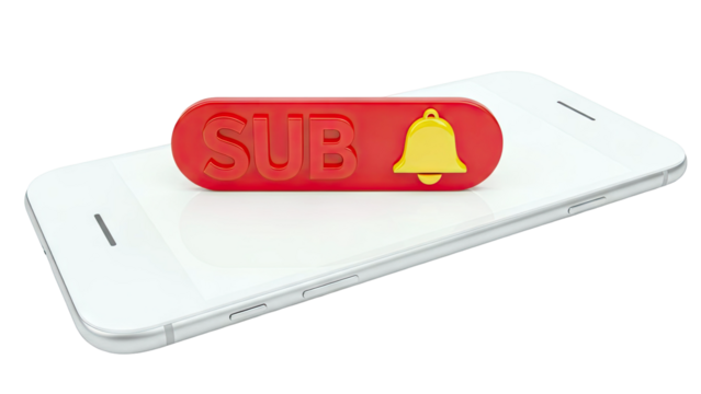 3D Render of Red Subscribe Button with Gold Bell Notification Icon