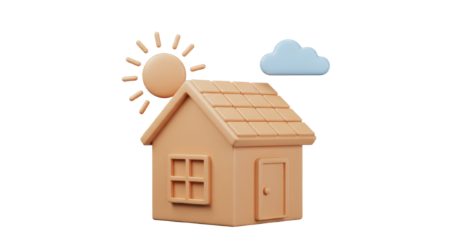 Isolated Peach House with Sun and Cloud Cartoon Style