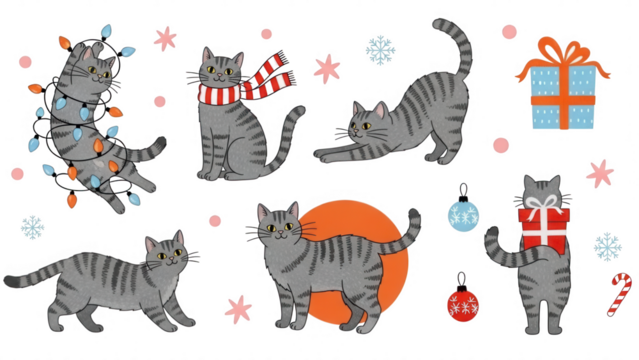 Christmas Cats Holiday Scene with Gifts and Ornaments