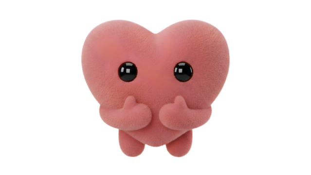 Whimsical pink creature with heart fins on transparent background