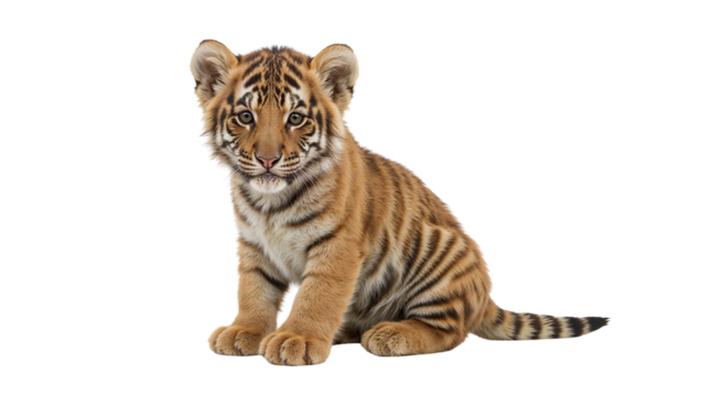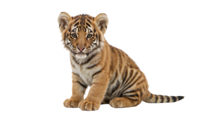 Cute tiger cub lying down with toy isolated PNG with Transparent Background