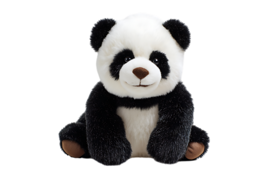 Adorable plush panda toy sitting on black background