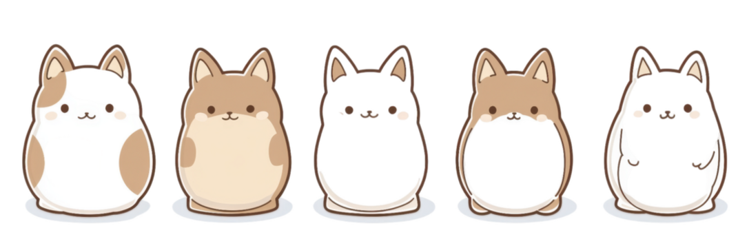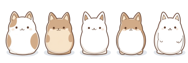 Cute cartoon animals in sticker set featuring adorable cat characters with various colors and expressions. Perfect for adding charm to any project