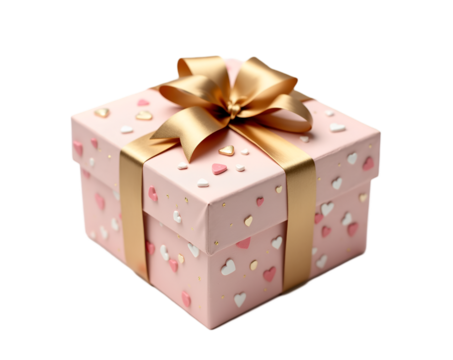 Elegant Pink Gift Box with Golden Bow and Heart Embellishments, A Luxurious and Romantic Present for Special Occasions, Perfect for Anniversaries and Celebrations